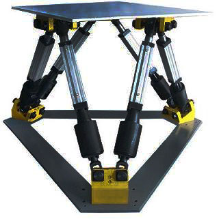 六自由度平臺由一個上平臺(活動平臺)、一個下平臺(固定平臺)和六個執(zhí)行機(jī)構(gòu)組成,上平臺上裝在體驗(yàn)座位或體驗(yàn)座艙,臺體沿X、Y、Z軸的平動和繞X、Y、Z軸的轉(zhuǎn)動時靠支撐臺體的六個驅(qū)動桿來控制的